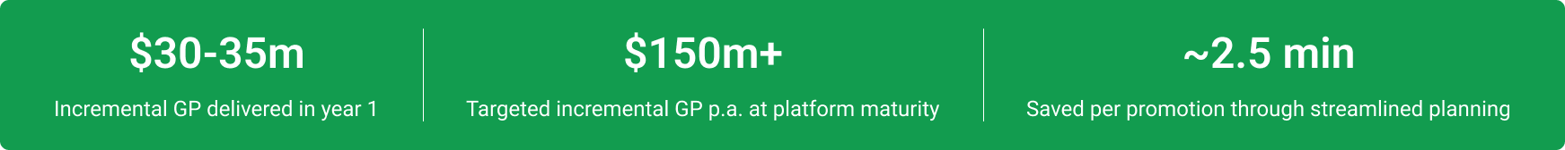 Woolworths’ Assistant Category Managers (ACM) & Category Managers (CM) often struggle to efficiently negotiate the best promotional plan and agreement with suppliers due to their lack of time and flaws in existing tools and processes.